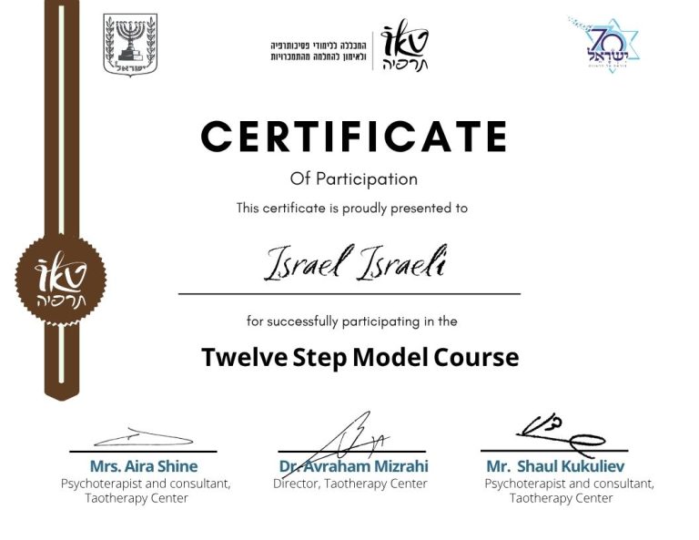 В конце обучения вы получите сертификат о прохождении курса от ведущей школы Израиля в области терапии травм и зависимостей "Таотерапия"
